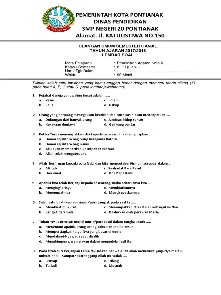 10 semester 2 beserta jawabannya, pg dan essay soal agama katolik . Kartu soal ulangan akhir semester mata pelajaran : I.pilihan ganda 1.manusia diciptakan tuhan memiliki kemampuan yang . Soal uts agama kristen kls 4 sd bab 1 2 semester i. Latihan soal agama katolik kls 10 semester 1 k13 jawabanku id from.
